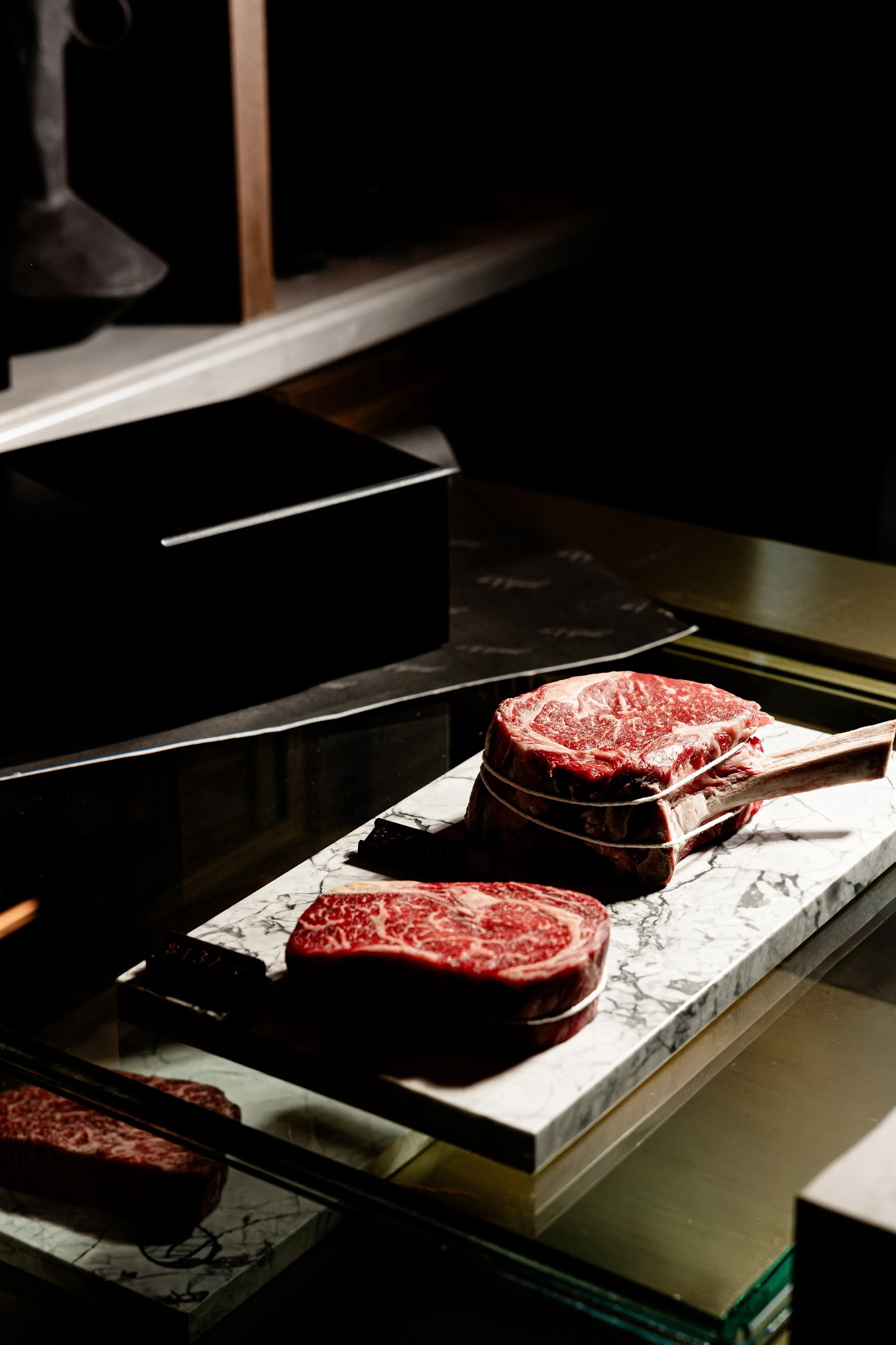 The process doesn’t make average beef better; it takes exceptional beef and makes it remarkable. Our butchers know precisely how long each cut should hang to unlock its full potential. In a controlled environment — low humidity, between 0°C and +4°C — the beef gradually loses 10– 15% of its water content while natural enzymes break down muscle fibers. The result is tenderness, depth, and a flavour that only time and skill can achieve.